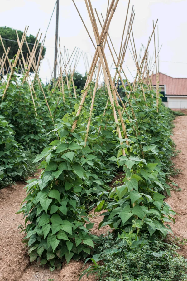 Image suggestion: Pole beans climbing a rustic trellis.